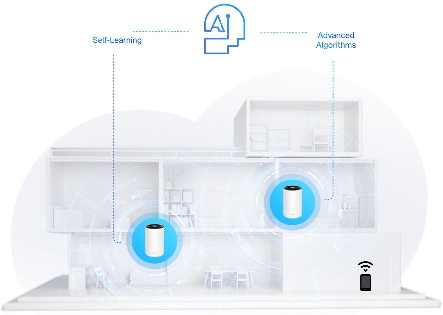 - Systém Mesh s umělou inteligencí: inteligentní analýza síťového prostředí zajistí ideální pokrytí Wi-Fi šité na míru vaší domácnosti