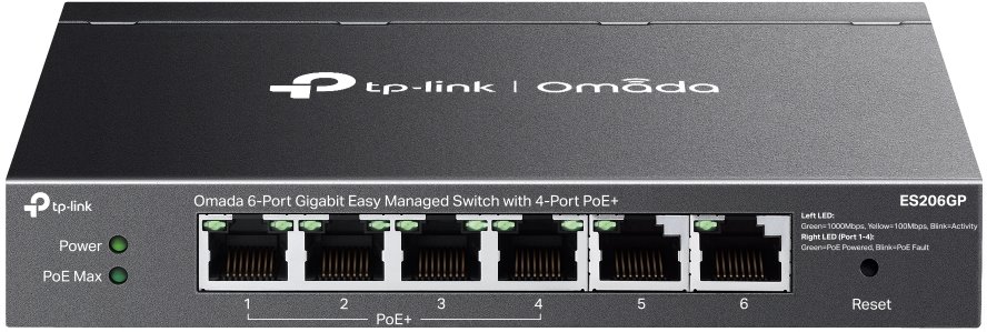 - 6× Gigabitový RJ-45 port (4× PoE+ 802.3at/af)