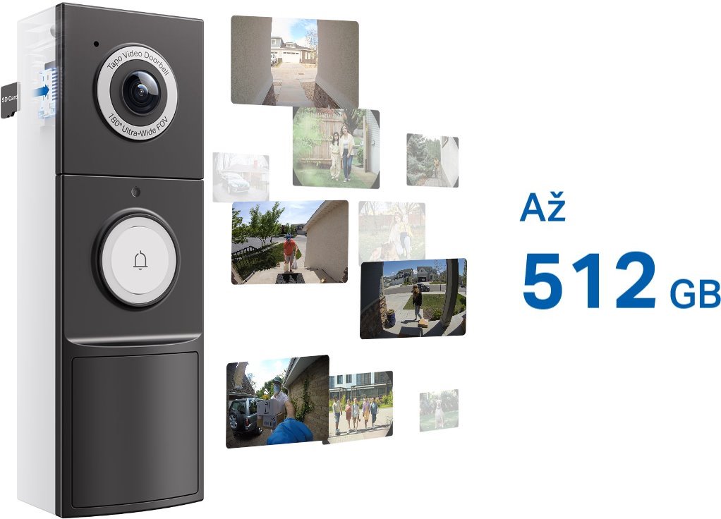 Nahraná videa můžete ukládat na kartu microSD s kapacitou až 512 GB (kupuje se samostatně) nebo využívat cloudové úložné služby Tapo Care (předplaťte si ji samostatně).