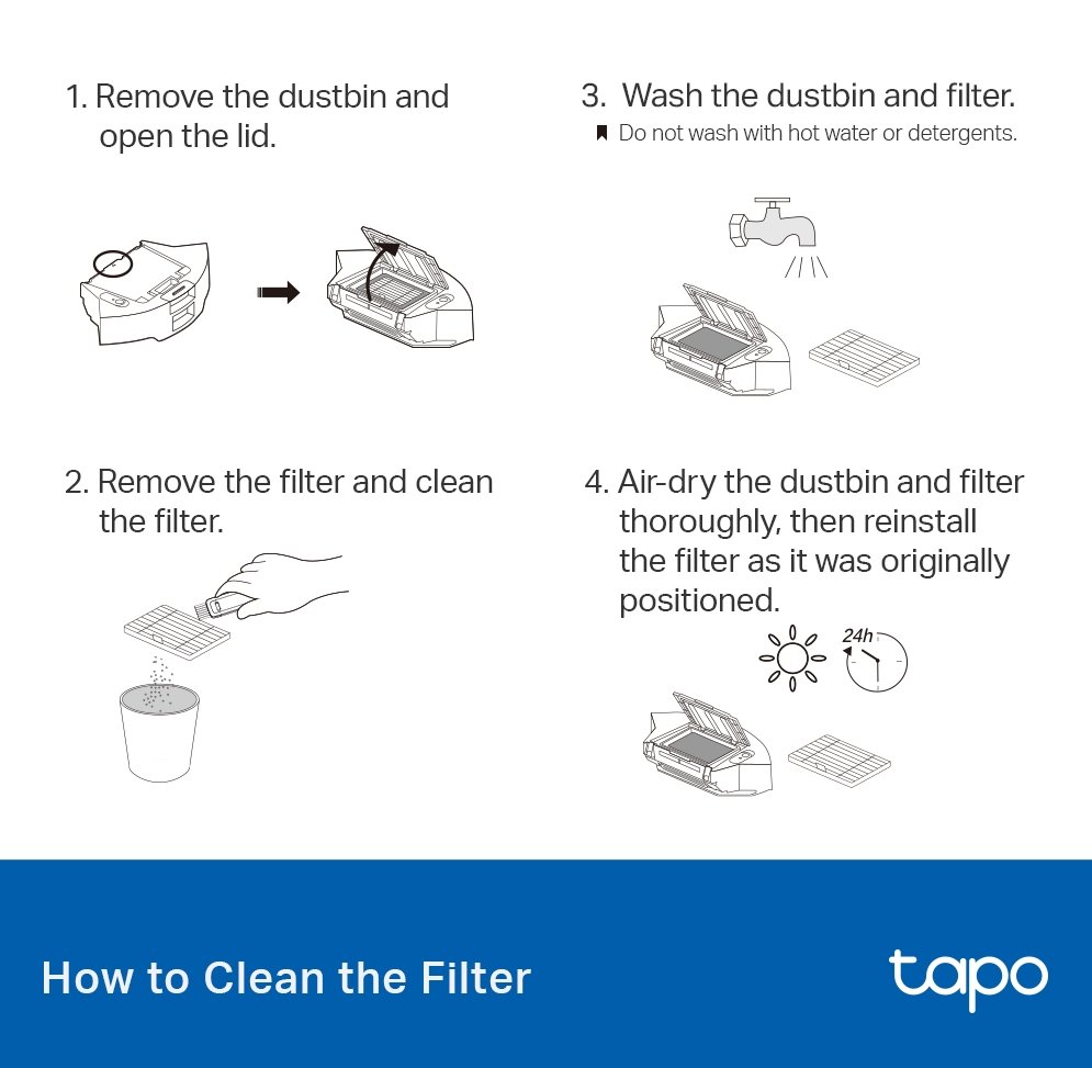 Náhradní sada pro robotické vysavače TP-Link Tapo zajistí efektivní úklid díky dvěma rotujícím kartáčům, hlavnímu válcovému kartáči a dvěma omyvatelným HEPA filtrům . Tyto prvky zajišťují důkladné zachycení