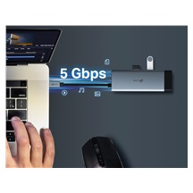 Dokovací stanice 6v1 od TP-Linku promění jediný USB-C port na šest portů včetně 4K@60Hz HDMI, Gigabitového Ethernetu, 100W Power Delivery (USB-C), 1× USB-C datového portu a 2× USB-A datových portů. Podpora ultra vysokého rozlišení umožňuje připojení k externímu monitoru přes HDMI pro ostrý obraz. Stabilní Gigabit Ethernet zajišťuje spolehlivé připojení. Nabíjení až 100 W umožňuje rychlé napájení zařízení i během práce. Přenos dat rychlostí 5 Gbps podporuje současné využití několika USB zařízení. Jednoduchá instalace díky plug & play.