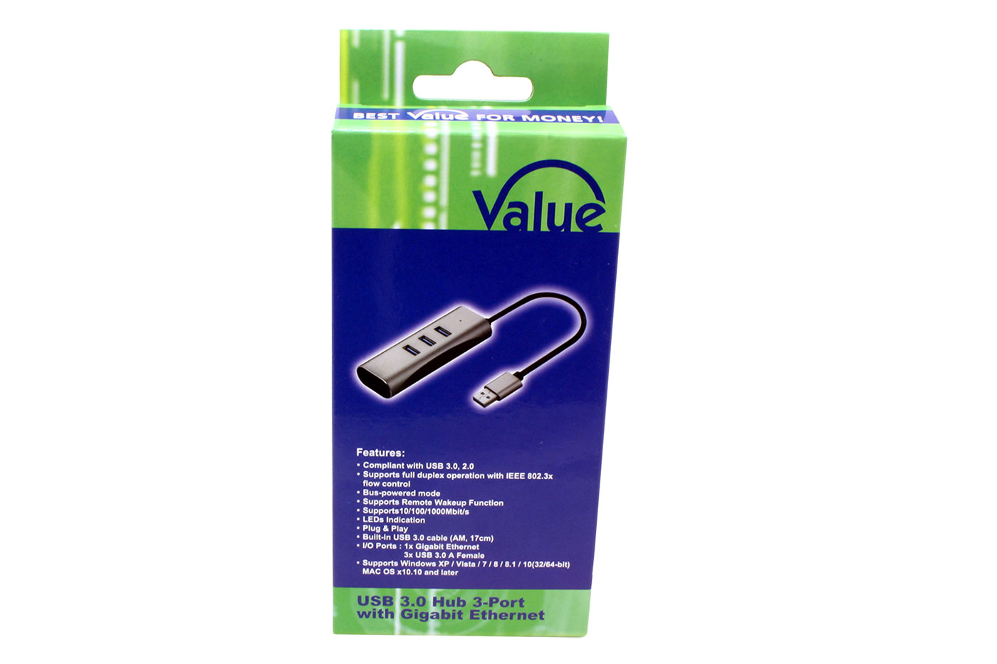Value Multiport adaptér USB 5Gbps, USB3.0 A(M) -> 1Gb LAN + Hub 3x USB3.0 A(F)